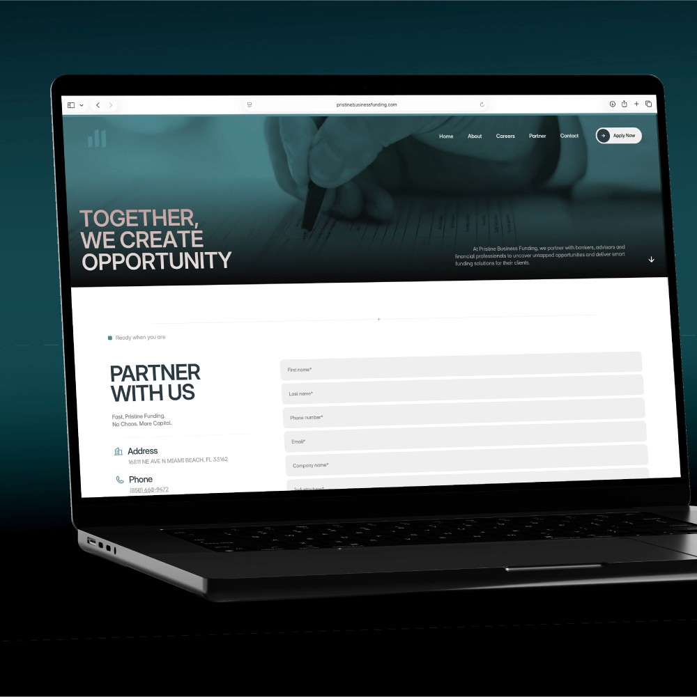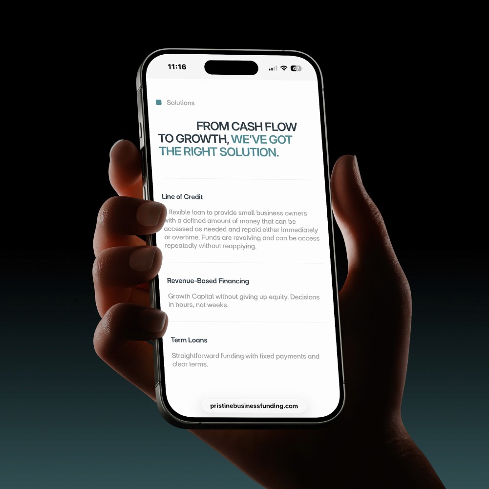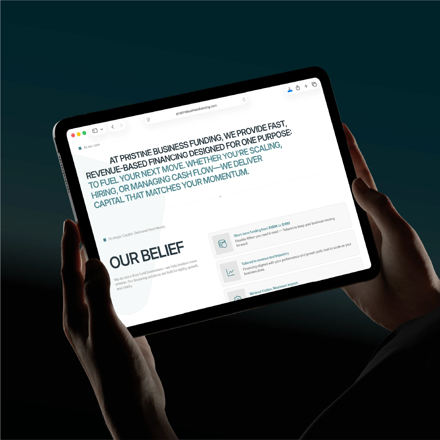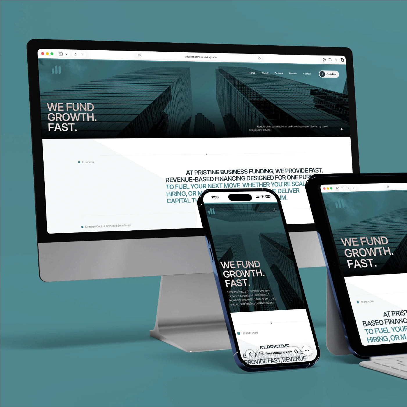 Repositioning Pristine Business Funding as a modern capital partner through a cohesive brand identity and elevated web presence.